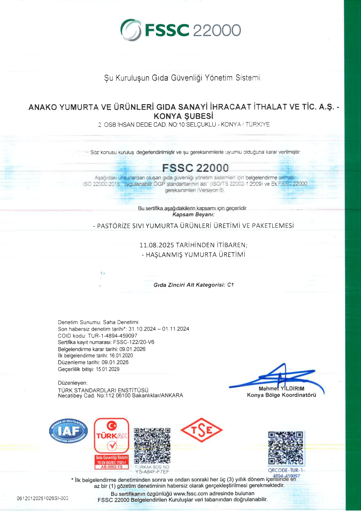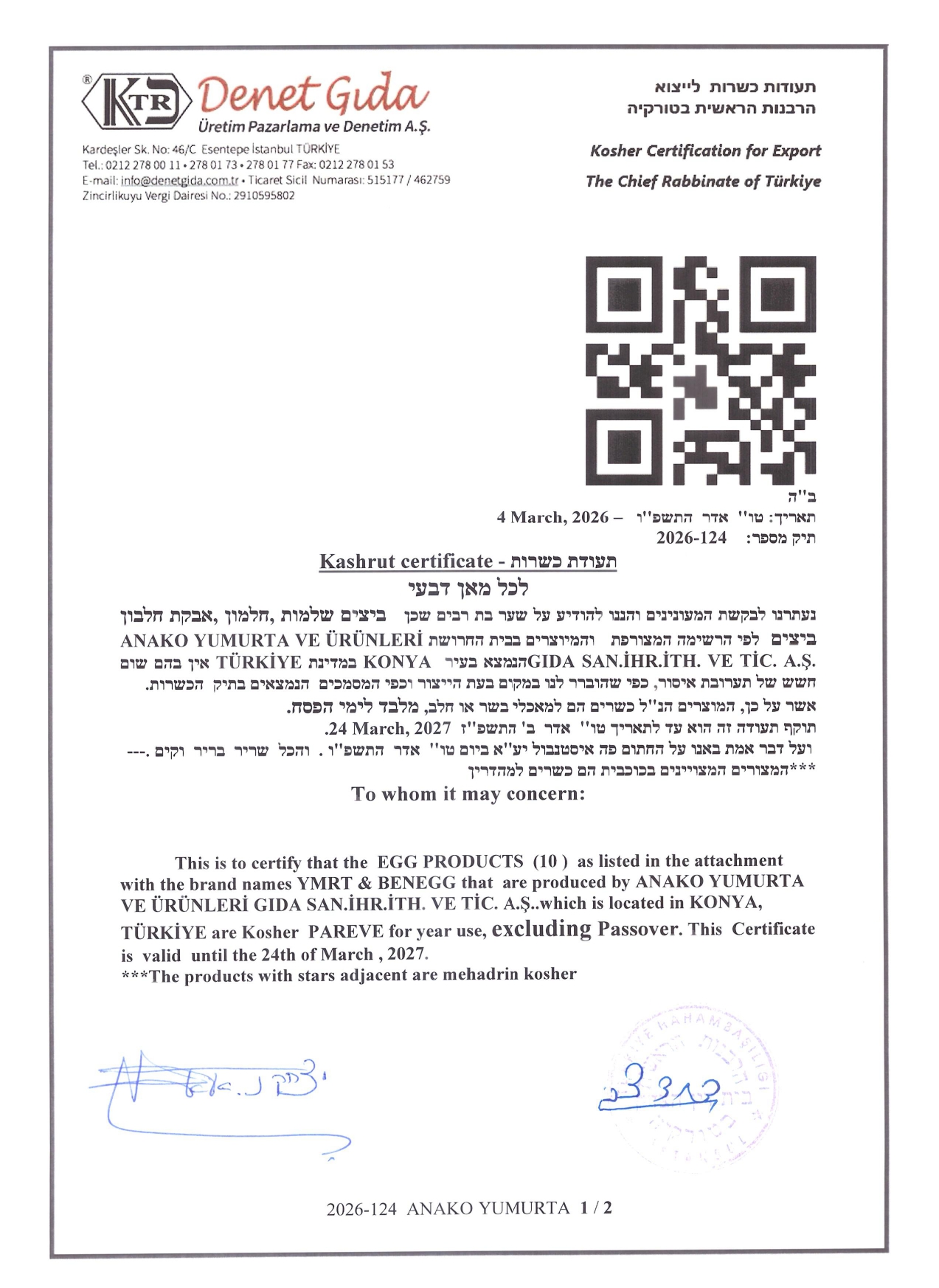 Tüm faaliyetlerimiz ISO 9001:2015 ve FSSC 22000 standartları ile uyumludur. Ürünlerimiz Helal ve Kosher sertifikasına sahiptir.